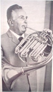 Here’s another interesting LP I discovered in our music library, a recording of Domenico Ceccarossi (1910-1997) playing his Ten Caprices for solo horn [the picture at left is taken from the back of the record jacket, Musical Heritage Society, MHS 3815]. For more information on this Honorary IHS member, you can check out the following pages on the IHS website. First is his biography page, which lists his professional playing positions (Radio Orchestra of Milan, Academia di S. Cecilia Orchestra, Radiotelevisione Italiana), teaching positions (Conservatories in Rome and Pesaro), and his many other contributions to horn playing in the 20th century. The other page is a part of Pete Exline’s 1964-65 Survey of European Horn Playing Styles, which has been recently uploaded to the IHS website. The page on Ceccarossi includes pictures of his mouthpiece, horn, and embouchure (upstream), as well as information on his instrument, a “Rampone-Cazzani with slide valve change.” Although I had heard of him before, I wasn’t aware of these compositions or the recordings, both of which are fantastic. The Caprices are brief, virtuosic, and quasi-improvisatory, sounding to my ear almost like modernized versions of Gallay’s Unmeasured Preludes. From the start I was impressed with Ceccarossi’s seemingly effortless technique, full of style and bravura. Here’s a brief quote about his recordings from his IHS Honorary Member biography.