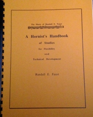 Here’s another review I meant to write earlier this summer but am just now getting around to, Randall Faust’s A Hornist’s Handbook of Studies for Flexibility and Technical Development. I purchased this book along with Christopher Leuba’s The Rules of the Game at IHS 44 in Denton. Simply put, this is one of the most comprehensive single-volume collections of technical exercises I’ve ever seen. At 137 pages, this is much more than a daily warm-up or routine, but rather a compendium of exercises from which to select multiple warm-ups and/or routines. The exercises cover long tones, scales (major, minor, chromatic, modal) intervals (3rds through 7ths), flexibility (numerous lip trill and lip slur studies), articulation, arpeggios (two and three octaves), stopped horn, dynamic range, and sample warm-up patterns. Each section is prefaced by concise instructions from Dr. Faust which, if followed, will ensure that the player gets the maximum benefit from the exercises. The arpeggio studies included near the end of the book are an excellent example of the thoroughness with which the author approaches his subject. The customary two and three octave patterns normally found in similar publications are here, but in addition there are studies based on the diminished 7th chord, Neapolitan chord, and German and French 6th chords. The major scale exercises also go beyond the usual patterns, with exercises in diatonic 3rds through 7ths.