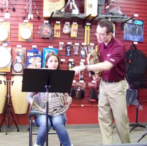 On Saturday, we performed two more concerts and worked with some very fine students at two Music and Arts Stores. We had great crowds for both shows, and I heard some excellent horn playing from students ranging from seventh grade through high school senior.  One thing I noticed was that all of the horn players had very solid fundamentals, no doubt due to their private lesson work with Ashley Downing – a local freelancer and teacher in the Dallas area, and the wife of Music and Arts District Manager Andy Downing.  Regular private lessons with a good teacher combined with individual practice are definitely the way to become a better horn player!