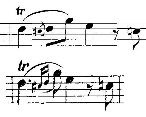This week’s Kopprasch installment is a real lip trill workout. As with the previous etude (No. 44), this one is numbered differently in the Gumpert edition, where it is labeled No. 44. While this study isn’t recommended for developing lip trills, it is a great one for refining your technique. My edition recommends a tempo of quarter note=84-116, although quarter=100 worked the best for me. There are also a couple of interesting discrepancies between the two editions (Cornopub and Gumpert/Frehse/Carl Fischer). One difference is the notation of the ends of trills (nachschlag), as shown below. The top example is from mm. 16 in the Cornopub edition, and the bottom is from the same measure in the Gumpert edition.