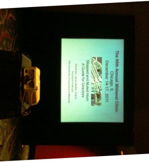 I’ve already mentioned the sheer number and diversity of exhibits at the clinic, so I won’t go on too much about them. I did make a few purchases (books and recordings) a few of which I’ll be reviewing on this blog in 2012. I’ve listened to snippets of all the recordings, and the ones that really stand out to me so far are J.D. Shaw‘s recording with the University of New Mexico Wind Ensemble, and the Canadian Brass, Brahms on Brass.